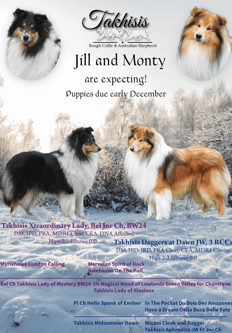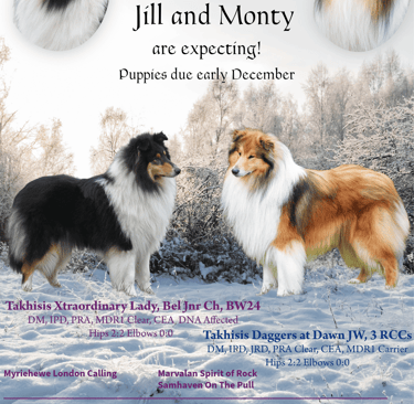 Exciting news! We are expecting puppies in early December 2025, out of Jill by Monty